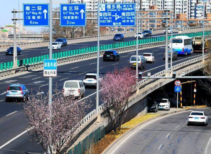 北京后生报记者在德贤路5环到4环区间看到,桃花仍是运行朵朵敞开,把说念路两侧装饰起来。