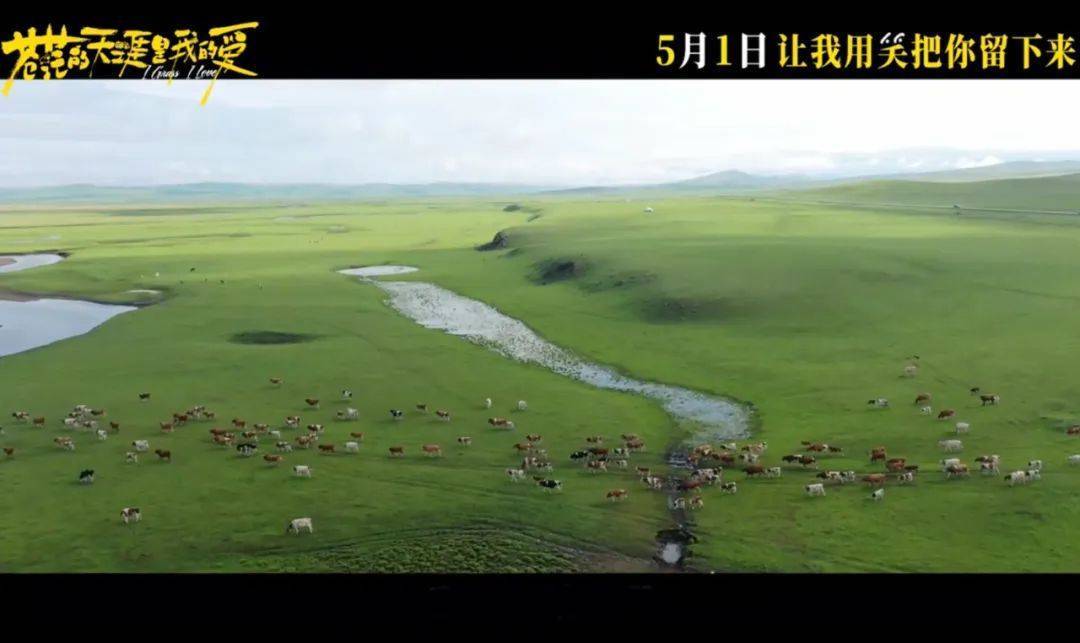 影片中,一览无余的呼伦贝尔大草原,障碍至天空线的莫尔格勒河,以及被鎏金边的云霞温顺包裹的蒙古包,组成了影片的诗意底色。