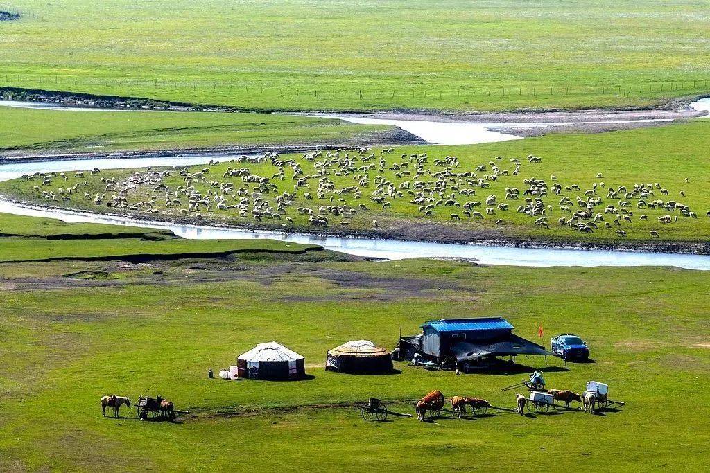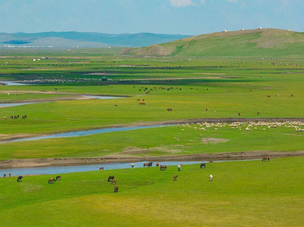 莫尔格勒河沿岸点缀着星星落落的蒙古包,成群的牛羊、奔走的骏马,是这里出奇的景况。
