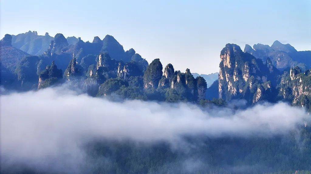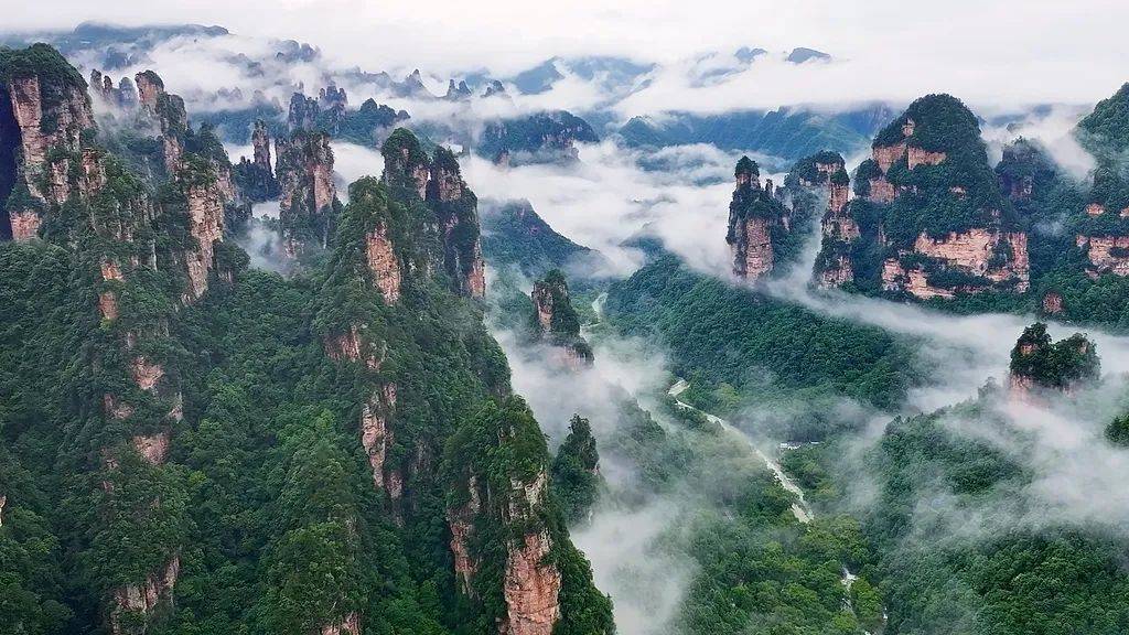 武陵源的砂岩峰林地貌是其最显赫的特征之一,景区内散播着3000余座砂岩柱和砂岩峰,放眼望去,峰峦叠翠。