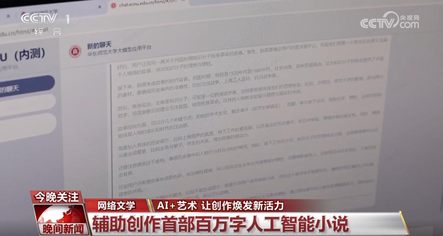 在文体领域,AI也提供了全新的写稿形态。日前,华东师范大学用AI以“东说念主工智能大谈话模子+辅导词工程+东说念主工后期润色”的形势,创作出洋内首部百万字东说念主工智能演义。东说念主工贪图故事框架、辅导词,AI完成东说念主物干系图谱、批量段落写稿、完善故事细节。一位劳作的写手,全年无休写稿完成这么一部作品需要一年半,而用AI的形势只需要一个半月。