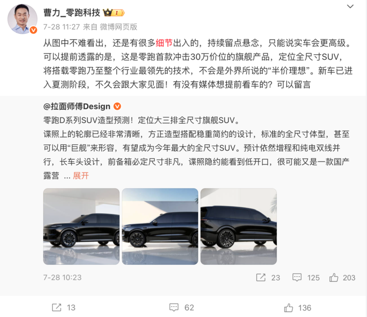 零跑念念要品牌进取,作念利润更高、价钱更高的车型还是成了一个必选项。