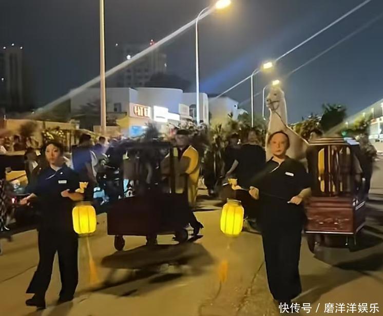 视频里,一伙东谈主风风火火地随着锣饱读声上前行。一运转是两位身穿玄色衣服的年青女子,手中提着黄色的灯笼,死后随着纸作念的白马和花轿。接下来是一堆姹紫嫣红的花圈,简直干豫超卓。