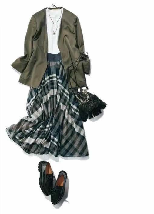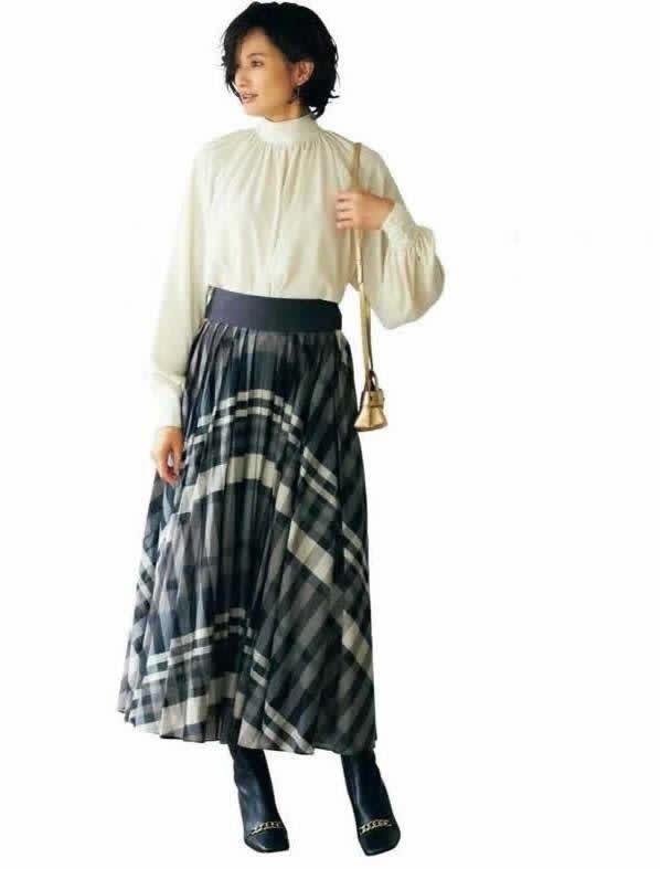 格纹裙:灰口角拼色,个性图案,不失千里稳的夸张