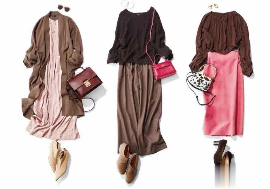 棕裙:长裙,棕红色,季节衔尾,作风衔尾,多功能