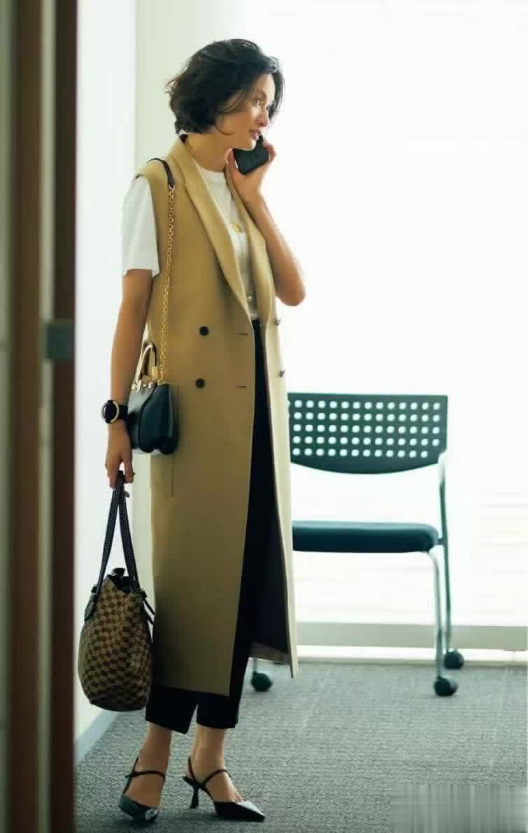 如若配长裤,尽量接受外长+内长的同色彩穿搭法,来谋求长马甲的平衡。显高,显瘦,显气质,太合乎鄙俚东说念主了。