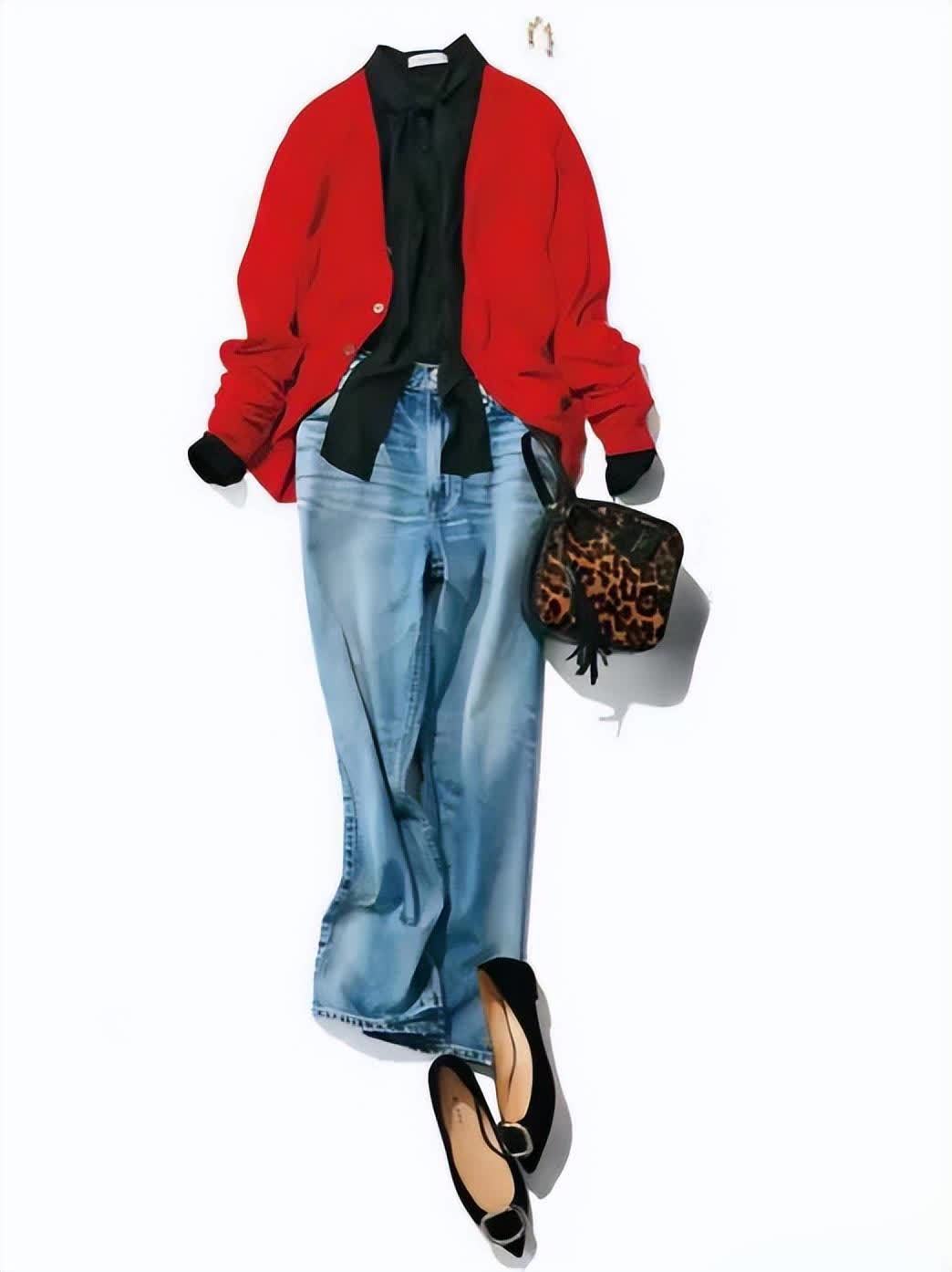 差点忘了,红诚挚,还是牛仔裤的绝配。一红一蓝,一慈详一失业,组合一皆从不失手。至于衔尾色,白、黑均可,各有各的调性。