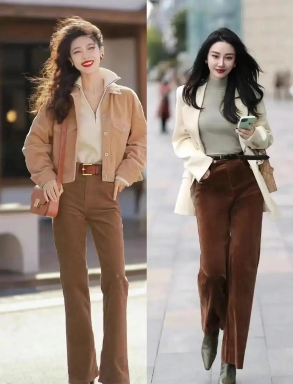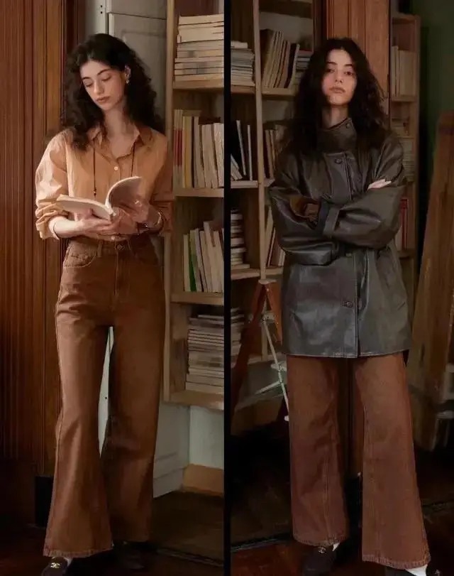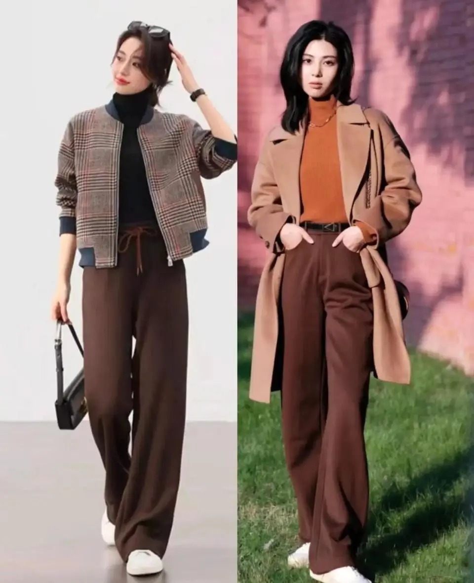 公共有莫得发现罗致好意思拉德色系的长裤来搭配,用绒面料的长裤来搭配更颜面,举例底下这两位博主的搭配就罗致了这么的绒面料长裤,搭配上短款的外衣,内搭真挚衫大概是翻领打底衫,无边穿出复旧洋气的造型。