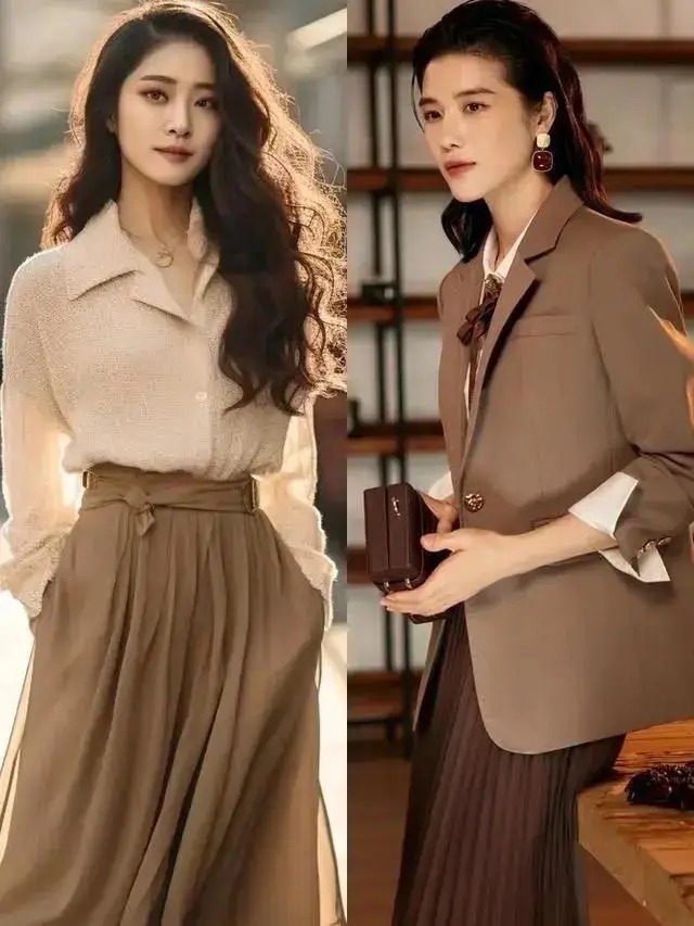 好意思拉德色系确乎能使得穿搭者变得愈加高等,举例底下用一件翻领的真挚开衫搭配上薄纱的半身裙,大概是说用一件好意思拉德色系的西装外衣,内搭白色衬衫,加上一条百褶半身裙,散漫出来的气质就很不菲。