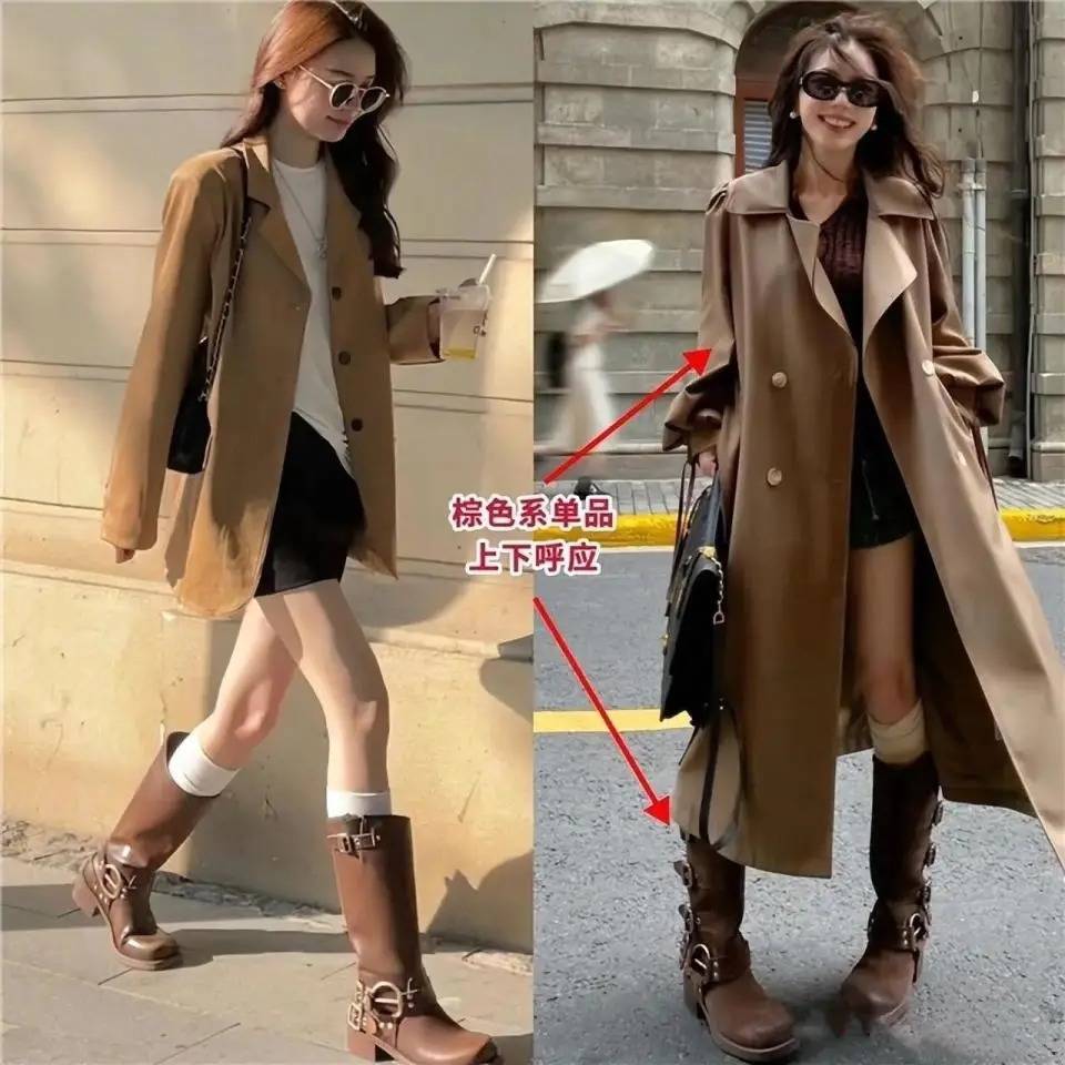 虽然啦,你还不错罗致好意思拉德色系的风衣外衣内搭真挚上衣,下半身奏凯罗致一条牛仔短裤,脚上穿的中筒靴,鞋子的神采和内搭的真挚衣服单品是属于同色系,这么举座的穿衣配色会更谄媚。